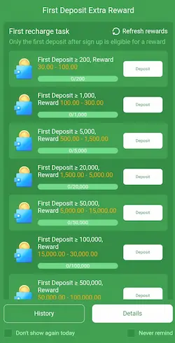 The app gives bonus when you deposit money in your game account. This increases your balance for more gameplay. But bonus money may have rules for withdrawal. Always read those rules before deposit money in your gaming account.